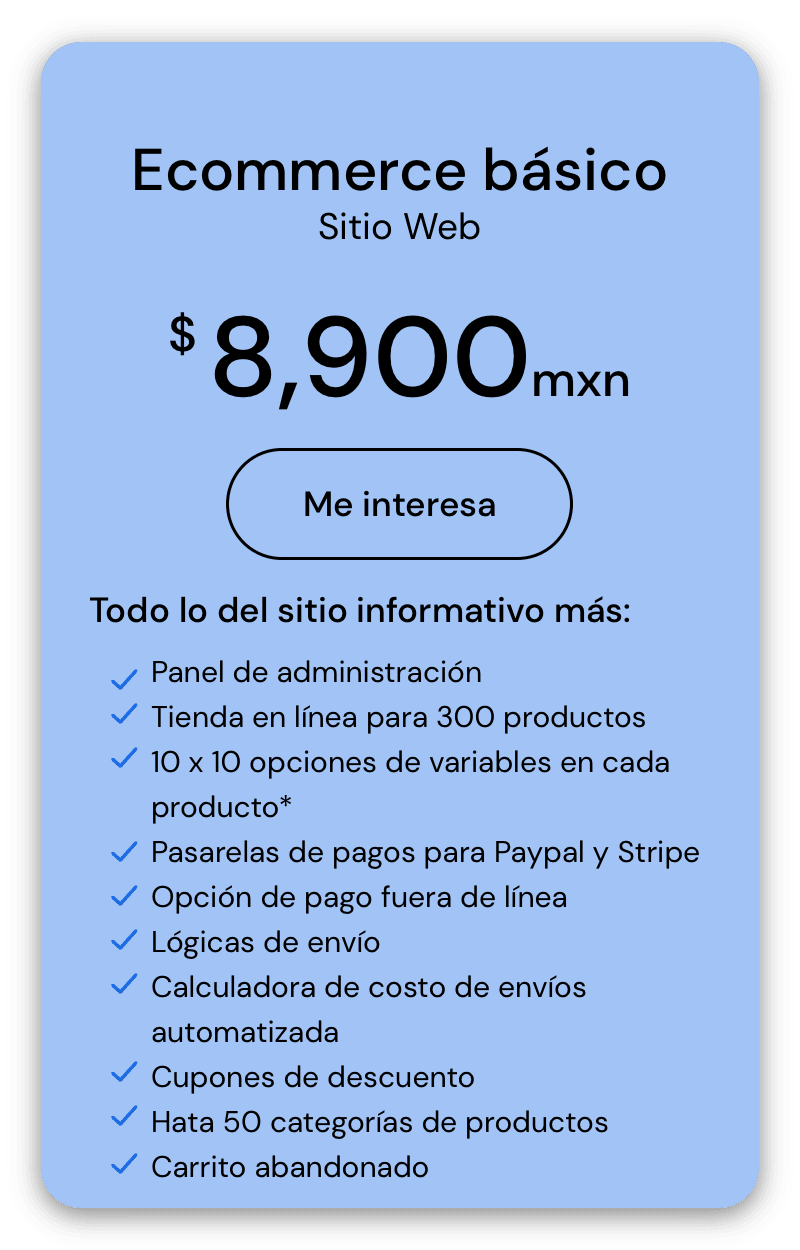 Podemos crear el sitio web a la medida de tu negocio. Todo lo que necesitas, en un mismo lugar.